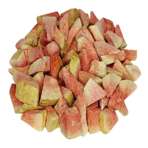 Ổi hồng sấy giòn được chế biến từ 100% ổi hồng tươi ngon, cắt miếng vừa ăn, giữ nguyên màu hồng đặc trưng và hương thơm thanh mát của trái ổi chín. Ổi sau khi thu hoạch được vệ sinh sạch sẽ, loại bỏ tạp chất và đưa vào quy trình sấy thăng hoa hiện đại, tạo ra sản phẩm giòn rụm với màu sắc tươi sáng và hương vị tự nhiên như trái cây tươi.
